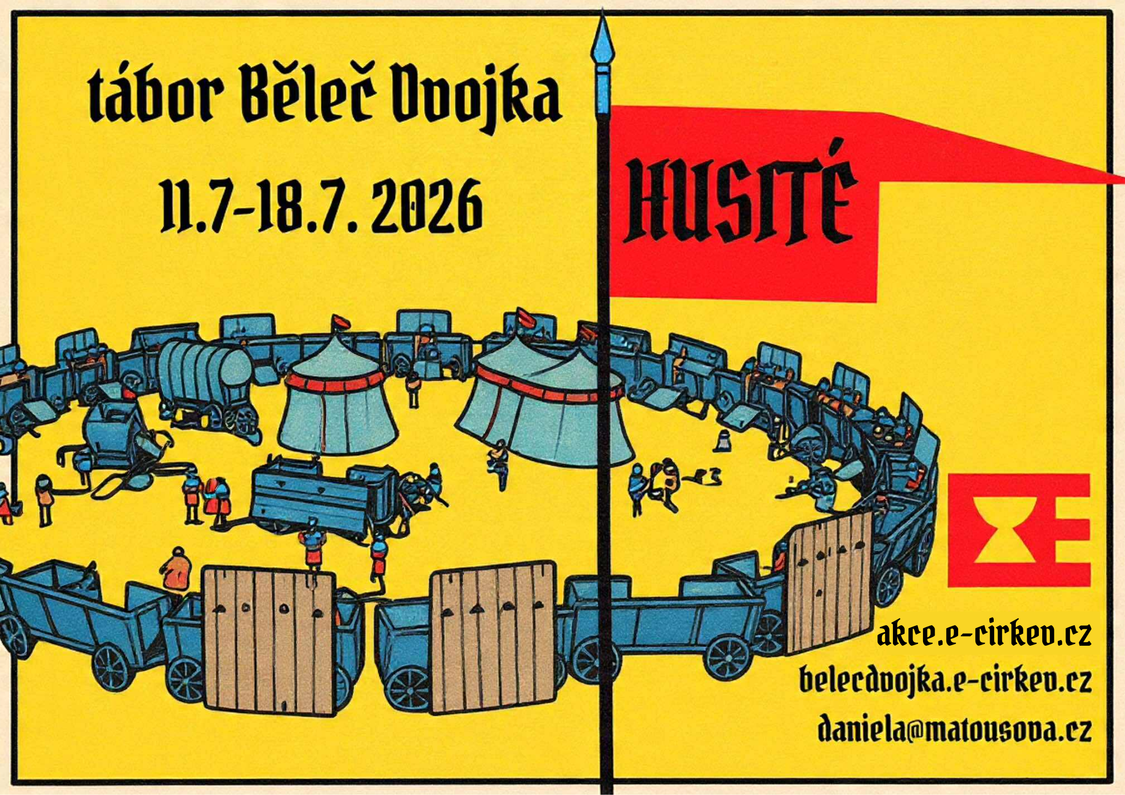 Místo konání Běleč nad Orlicí Datum zacatku akce 11. 07. 2026 Datum konce akce 18. 07. 2026 Pořadatel Odd. výchovy a vzdělávání ÚCK ČCE Kontakt na pořadatele vychova@e-cirkev.cz Další informace Týdenní letní tábor pro děti do 13 let v Bělči nad Orlicí – hry, šifry, soutěže a společné dobrodružství. Odkaz na další informace https://akce.e-cirkev.cz/ta2-2026